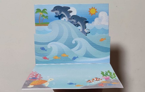 来自佳能官网,是一张较为复杂的组合结构立体卡,其题材为糖果礼盒,适合多种场景,可以作为情人节贺卡或生日贺卡。卡片打开后弹糖果弹出,非常炫酷。其结构形式也和适合初学者学习立体结构之间组合应用。