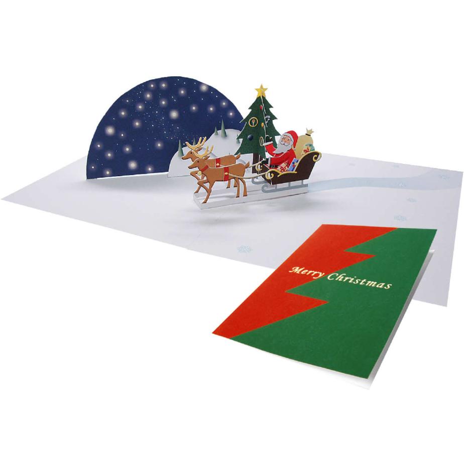 来自佳能官网,是一张圣诞老人坐在雪橇上的立体卡。V形折结构,零件较为细小,因此制作有些难度。