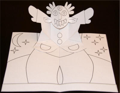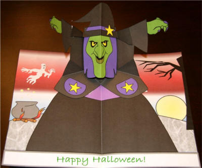 来自dltk-holidays,一张可以涂色DIY的外星人立体卡,可以用在万圣节上。制作比较简单,可以选择已经有颜色的直接制作,或者选择无色模板涂色后制作